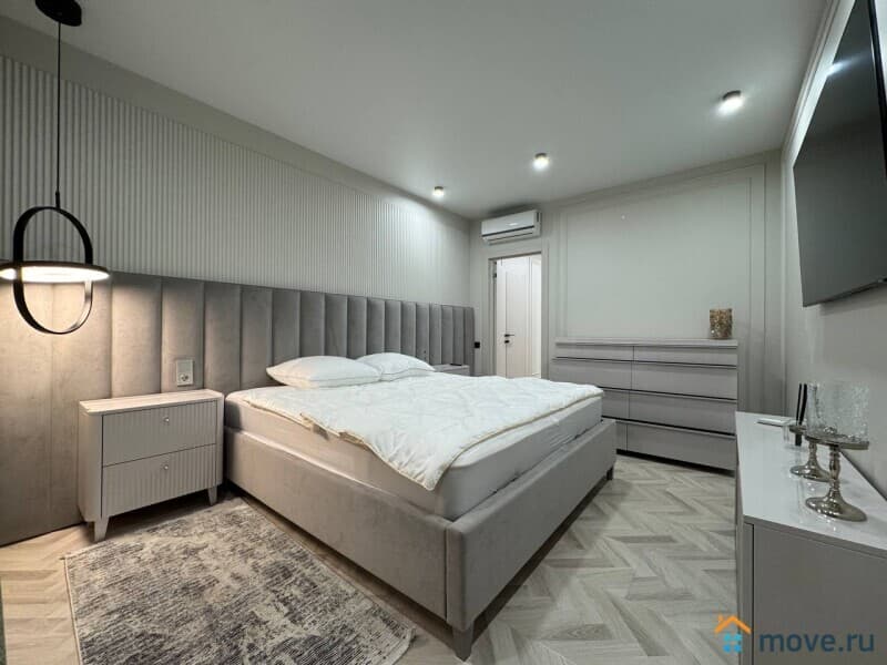 В квартире есть всё необходимое для комфортного проживания. Дизайнерский ремонт и продуманная планировка делают её уютной и стильной. В комнатах и на кухне установлена современная мебель. Из техники в вашем распоряжении кондиционер, холодильник, телевизор, стиральная и посудомоечная машины. Ванная комната оснащена ванной, а окна выходят на улицу, что добавляет естественного света. Есть балкон, где можно наслаждаться свежим воздухом.