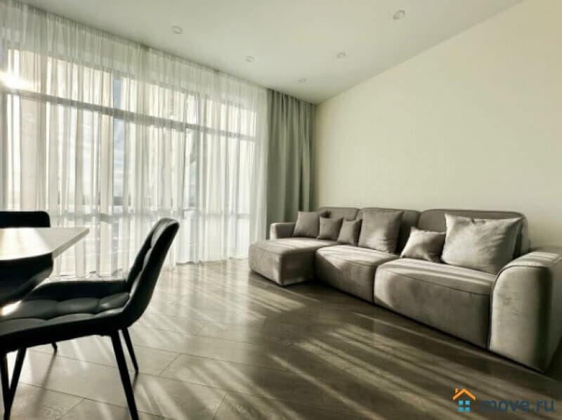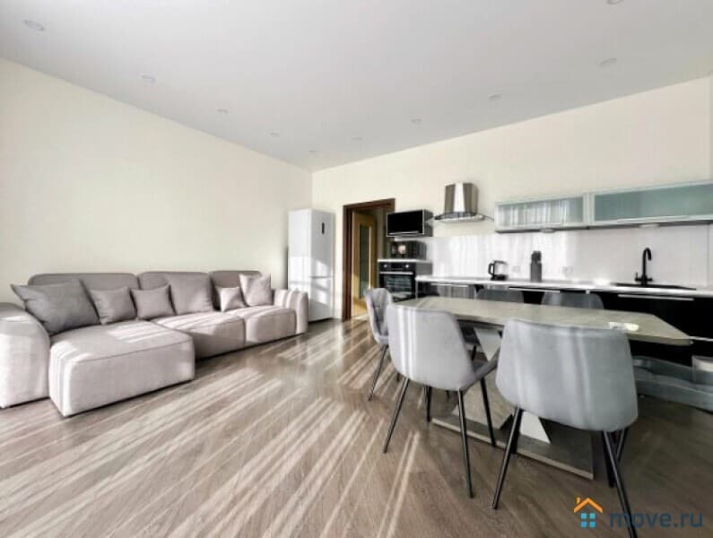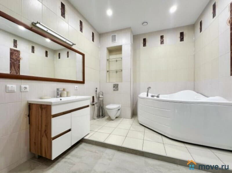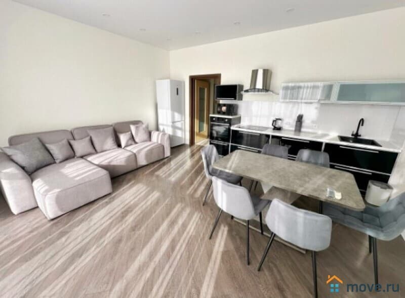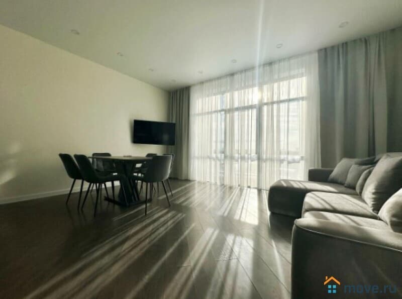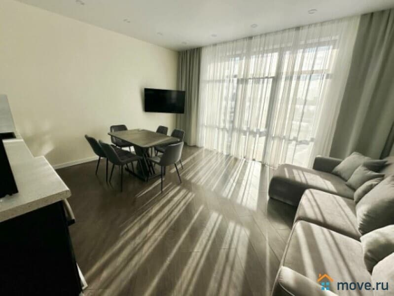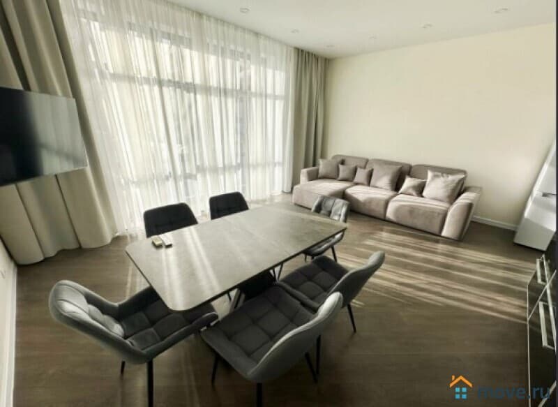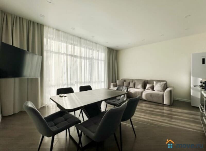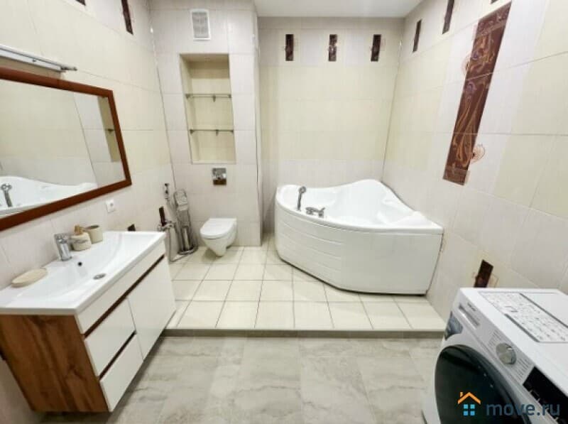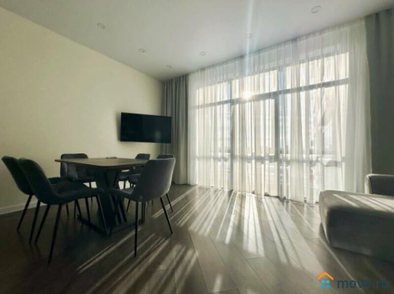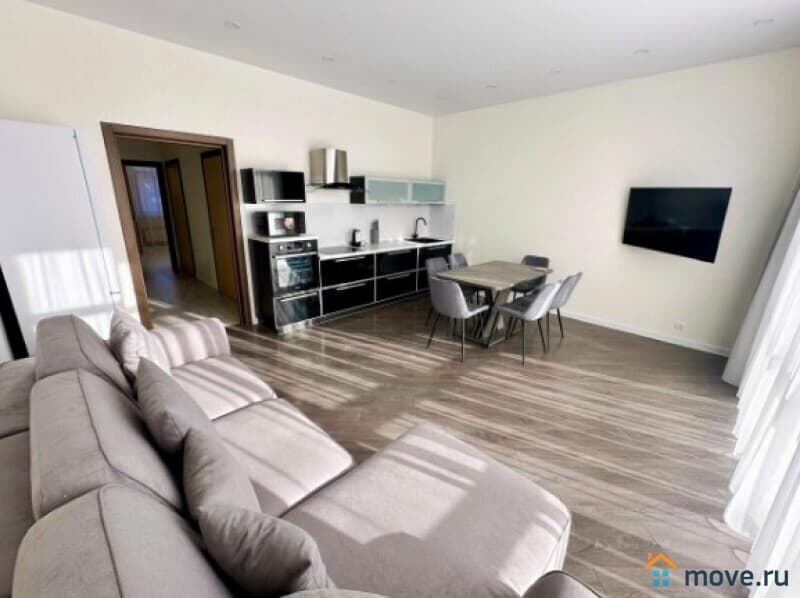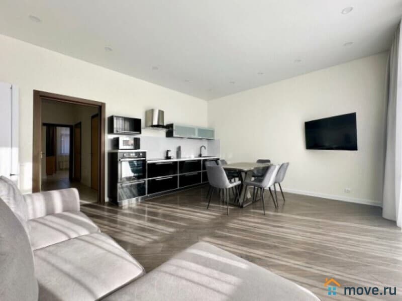 В квартире выполнен дизайнерский ремонт, продуманный до мелочей. Светлая и просторная кухня площадью 13 кв. м оборудована всей необходимой мебелью и техникой: холодильник, посудомоечная машина. В комнатах также есть мебель, а кондиционер и телевизор добавят комфорта. Отдельный санузел с ванной позволит насладиться расслабляющими водными процедурами.