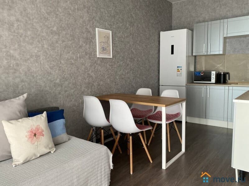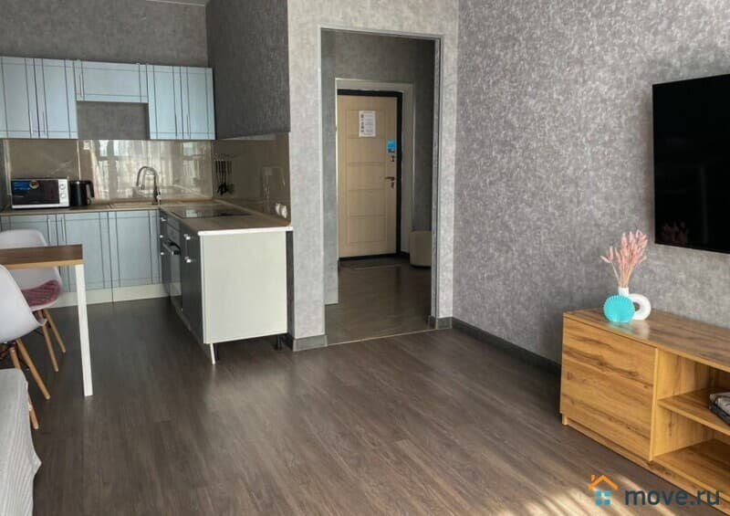- Полностью оборудованная кухня (индукционная плита, духовка, холодильник, микроволновка, посуда)