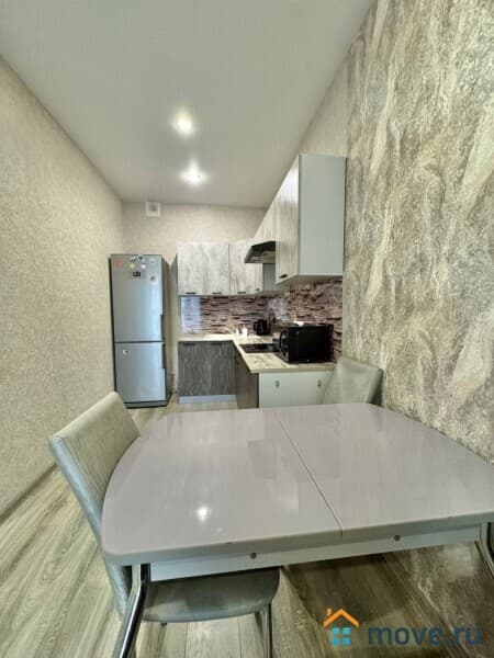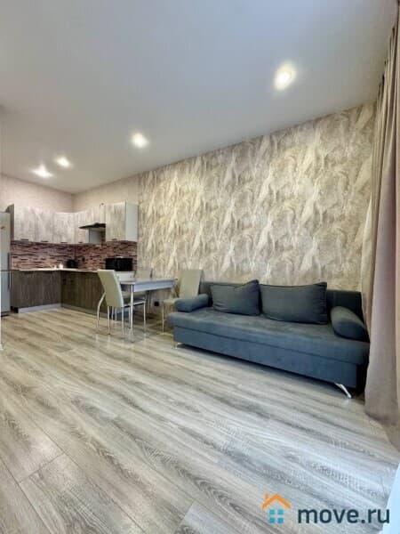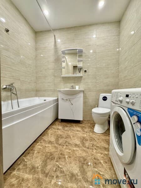 В квартире выполнен качественный евроремонт. На кухне и в комнате есть мебель, поэтому можно сразу заехать и жить. Из техники — кондиционер, холодильник, телевизор и стиральная машина, поэтому ваш быт будет комфортным. Совмещенный санузел оборудован ванной, что позволяет расслабиться после тяжелого дня.
